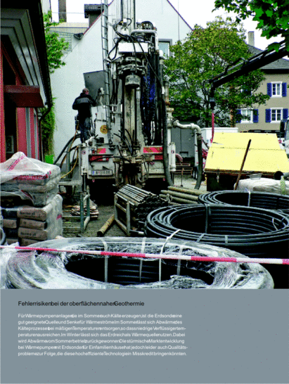 Fachgerechte Planung, qualifizierte Ausführung und Bauüberwachung sind daher Grundvoraussetzung für langfristig niedrige Betriebskosten und schützt vor Schäden, denn letztlich haftet der Grundstückseigentümer dafür. Es wird in diesem Zusammenhang empfohlen, eine erfahrene, zertifizierte Bohrfirma zu verwenden.