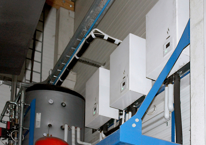 Die Wärmepumpe wurde im Inneren der benachbarten Halle installiert, um die große Abwärme der Laserfräsmaschinen für Heizzwecke nutzen zu können. Dies erlaubte eine kalkulierte Amortisationszeit von sechs bis sieben Jahren.