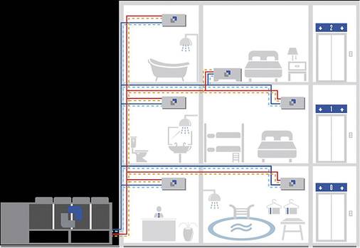 Angesichts hoher Energiepreise und ihrer prognostizierten weiteren Entwicklung müssen sich Planer ernsthafte Gedanken machen, wie sie bei der technischen Gebäudeausstattung die Energie- und Betriebskosten dauerhaft senken können. Darüber hinaus gilt es, die Gebäudeenergiebilanz zu verbessern, um die strengen Gebäudeenergieverordnungen zu erfüllen. Da erscheint es vernünftig, Gebäude mit gleichzeitigem Kühl- und Heizbedarf mit einem System auszustatten, das Heizen und Kühlen im Simultanbetrieb ermöglicht.