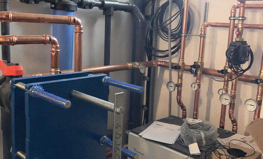 Dazu ließ PID zwei Sole-Wasser-Wärmepumpen von Novelan vom Typ SI 17.2 H 3 installieren. Die Abwärme der Motorenprüfstände wird per Wärmeübertrager in den Solekreislauf überführt und dient so als Primärenergiequelle für zwei Wärmepumpen. Deren Leistung von jeweils 17 kW reicht aus, um alle Räume des Unternehmens zu beheizen, insgesamt rund 700 m² Fläche. Und zugleich die Hallen mit den Prüfständen zu kühlen.
